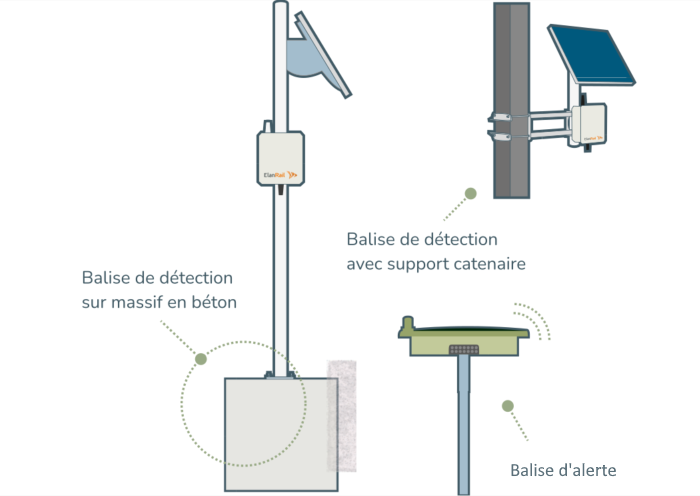 - Un réseau de balises connectées et autonomes en énergie : jusqu’à 200 trains/jour en standard grâce aux panneaux solaires.